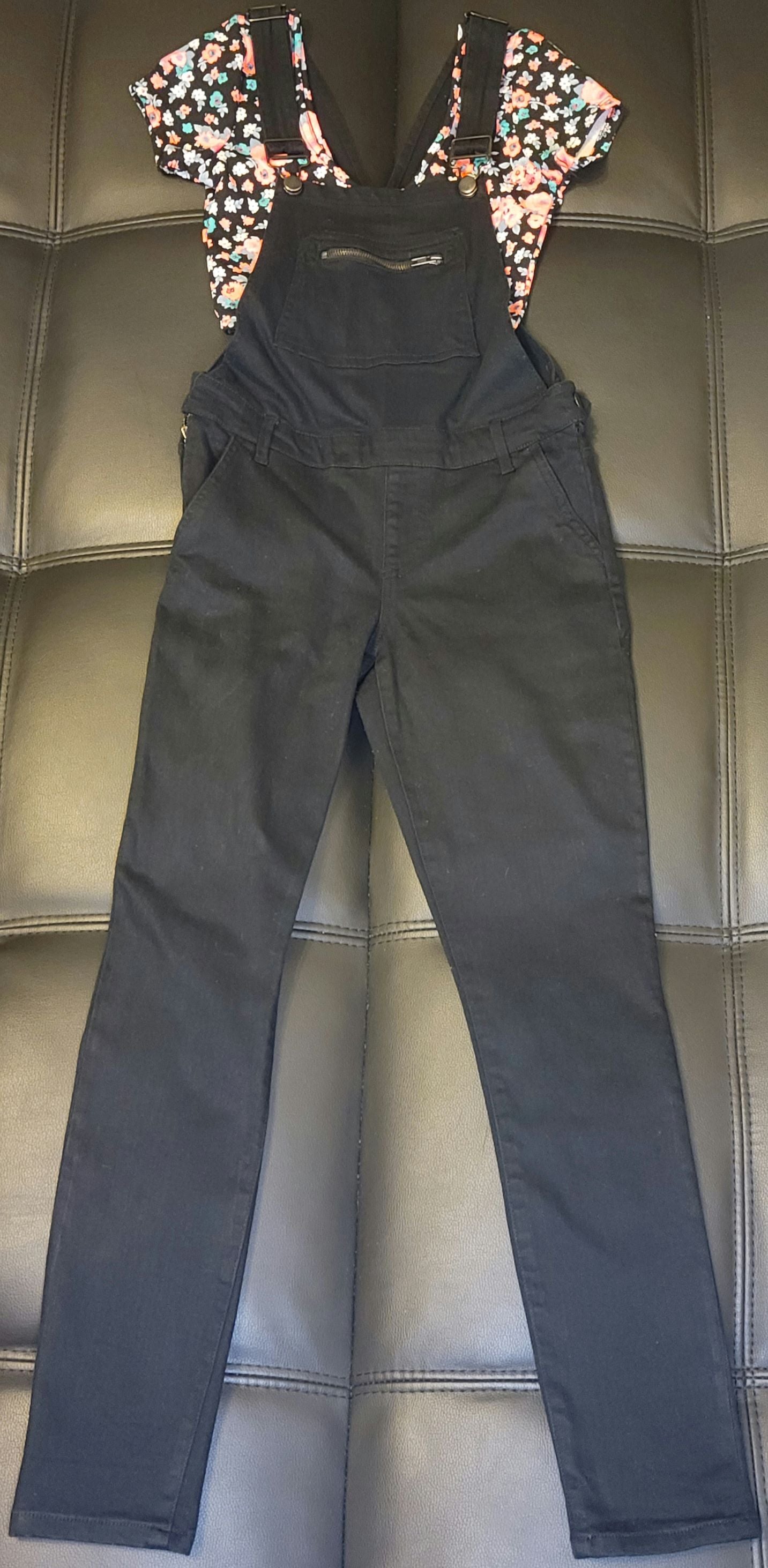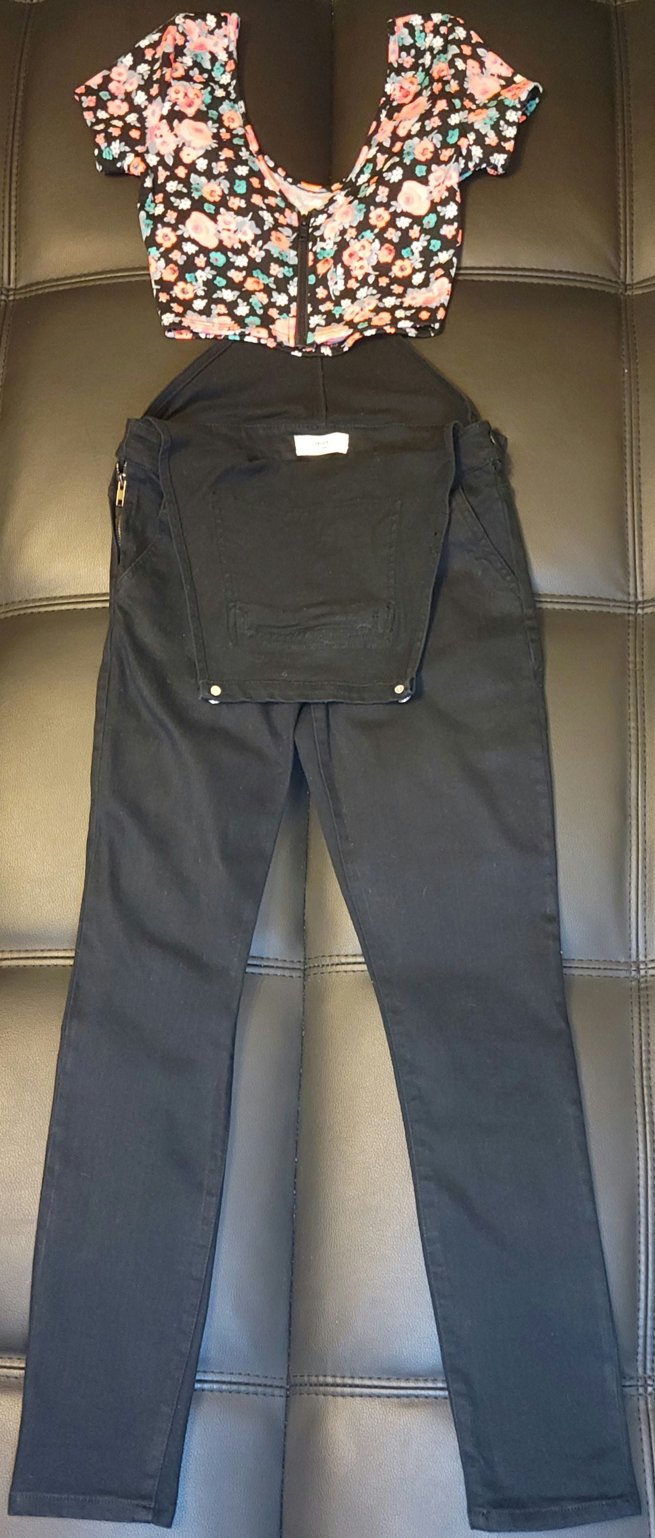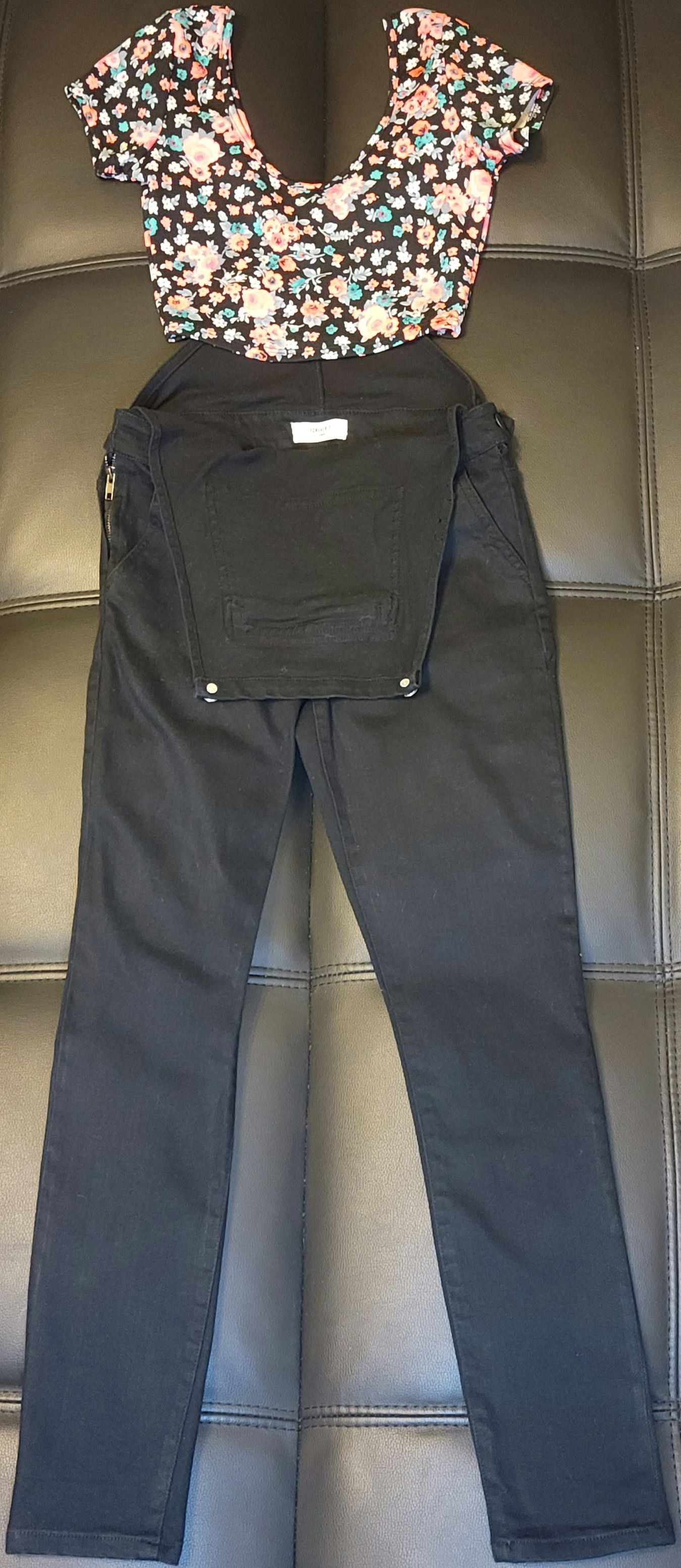 Black Overalls with Floral Crop Top